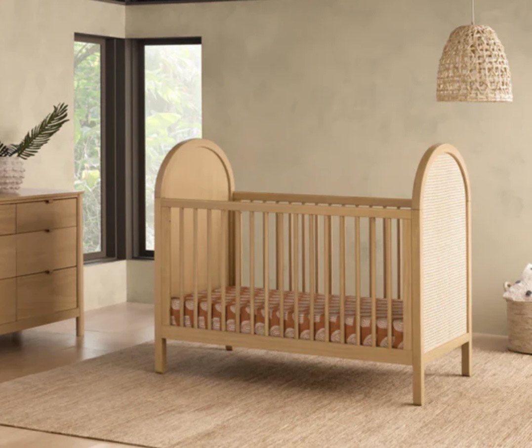 BOHO-INSPIRED AESTHETIC: The Bondi Cane Crib celebrates boho-inspired design and natural materials with its playfully arched side panels, curved feet, and woven plant-based cane. Plus, our hidden hardware construction eliminates visible screws on the furniture exterior for a polished, clean look.